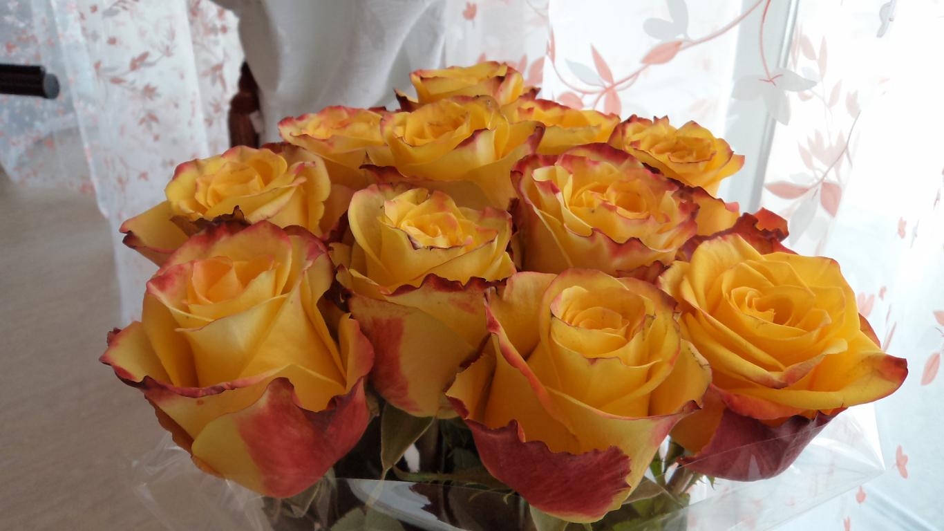 Wallpaper Beautiful bouquet of yellow roses in a vase by the window