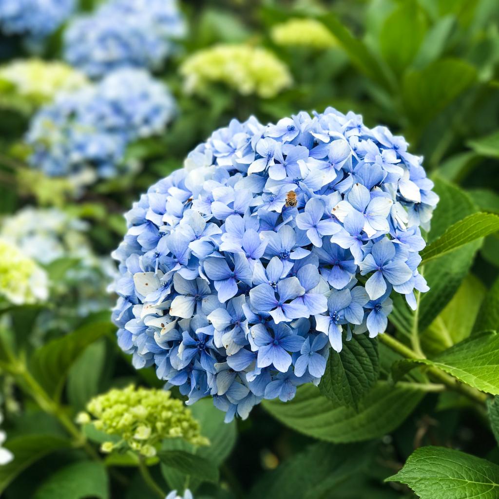 Wallpaper Beautiful blue hydrangea flower in flowerbed