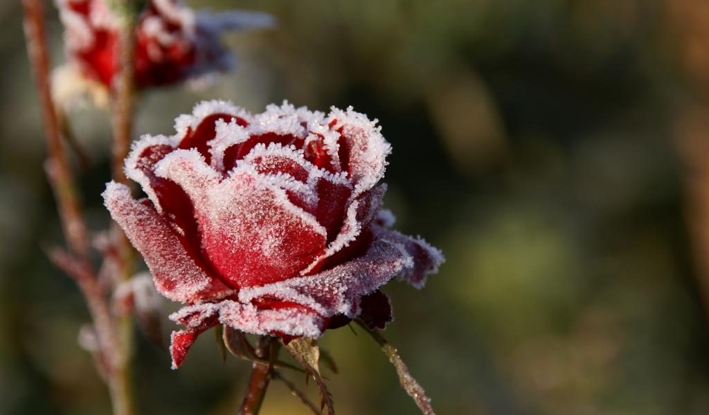 Wallpaper Red rose covered with frost close up