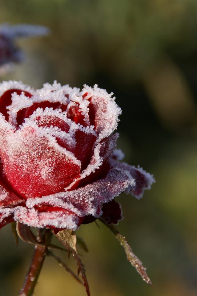 Wallpaper Red rose covered with frost close up