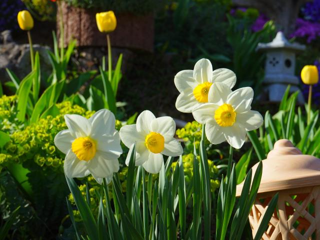 Wallpaper Beautiful white daffodils on a flower bed