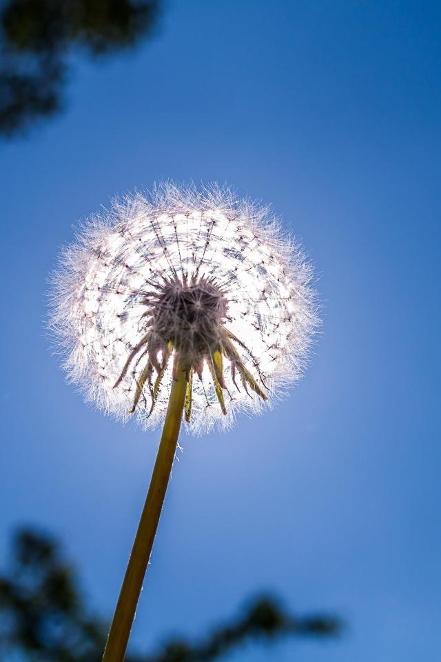 Wallpaper White dandelion on blue sky background