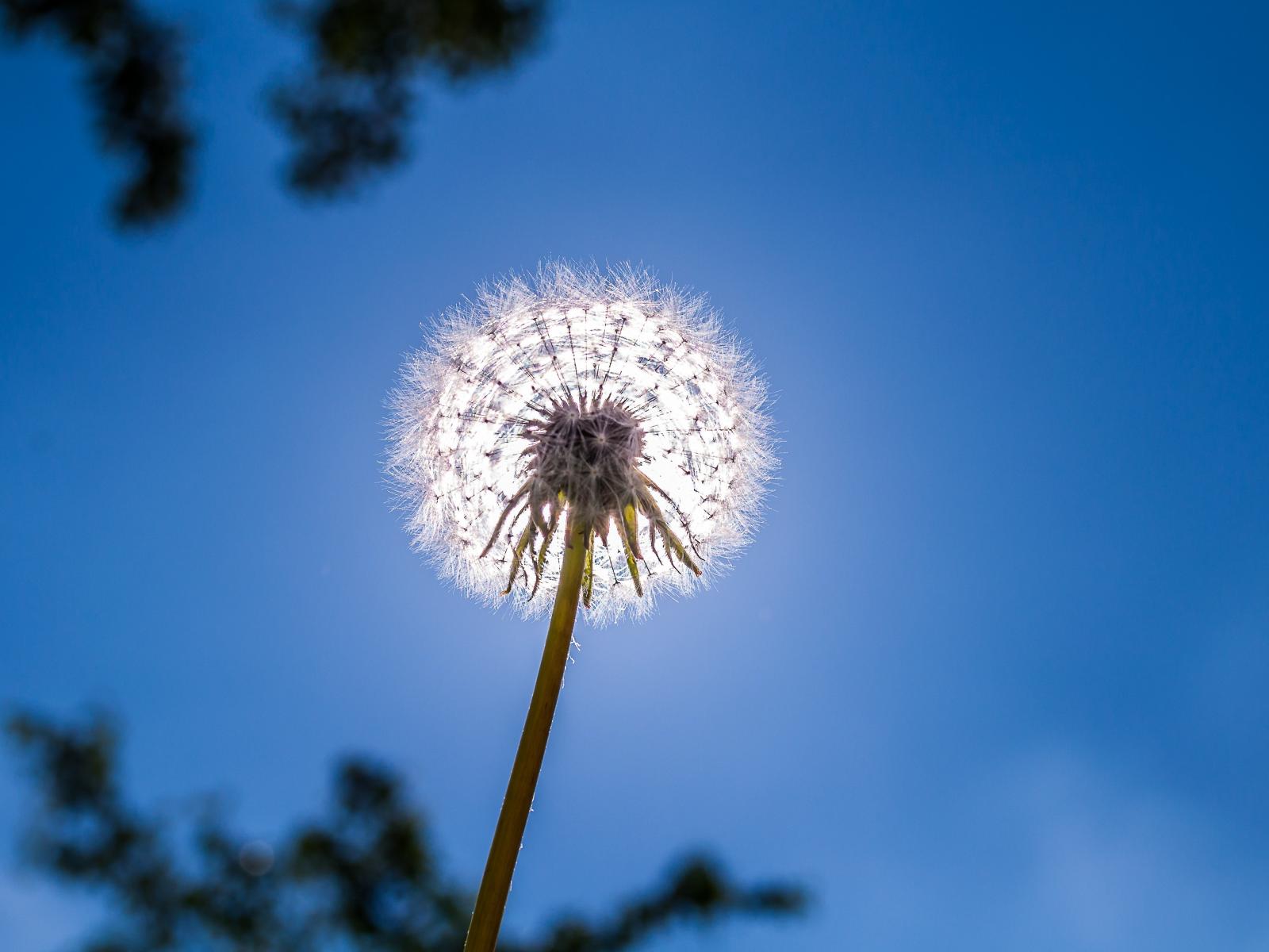 Wallpaper White dandelion on blue sky background
