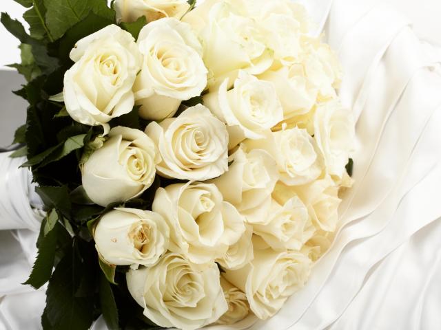 Wallpaper A large bouquet of white roses on a white cloth
