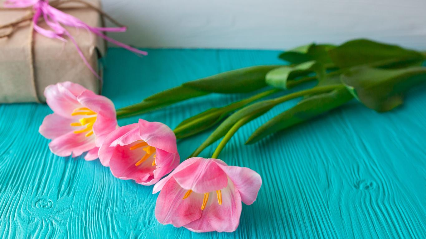 Wallpaper Pink tulips and a gift for Mother`s Day