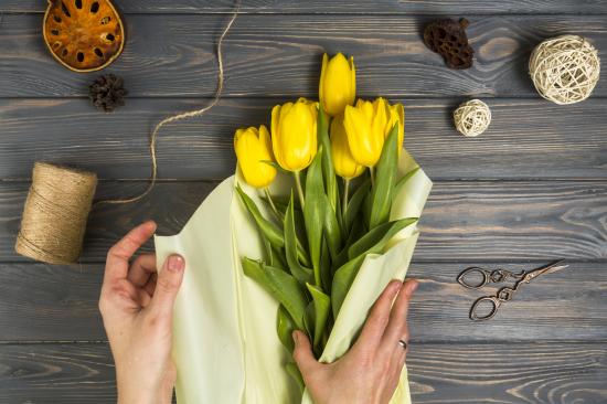 Wallpaper Bouquet of yellow tulips wrapped in paper