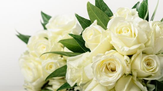 Wallpaper Bouquet of beautiful white roses with green leaves