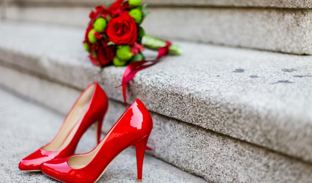 Wallpaper Red shoes on the steps with a bouquet