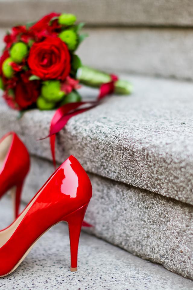 Wallpaper Red shoes on the steps with a bouquet