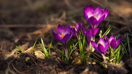 Wallpaper Beautiful purple crocuses on the ground