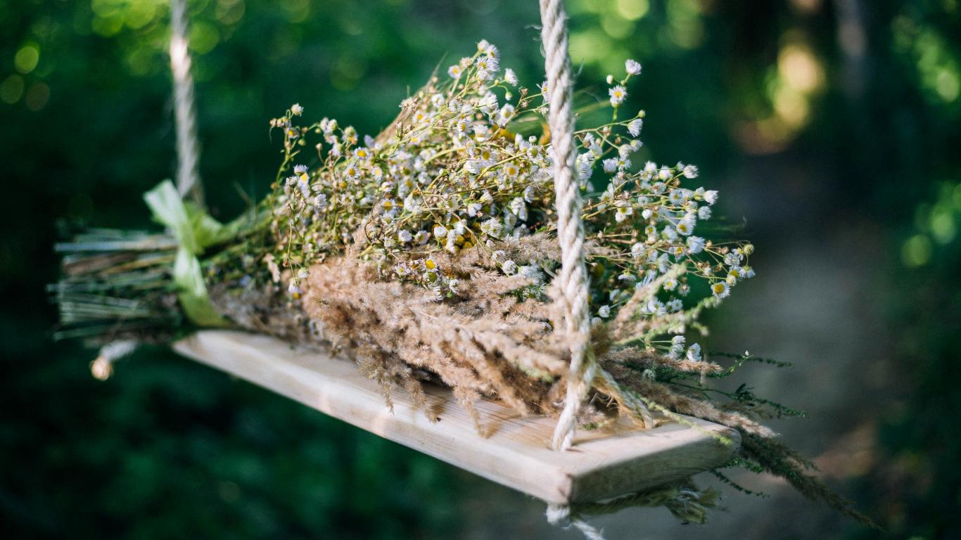 Wallpaper Bouquet of wild flowers on lie on a swing