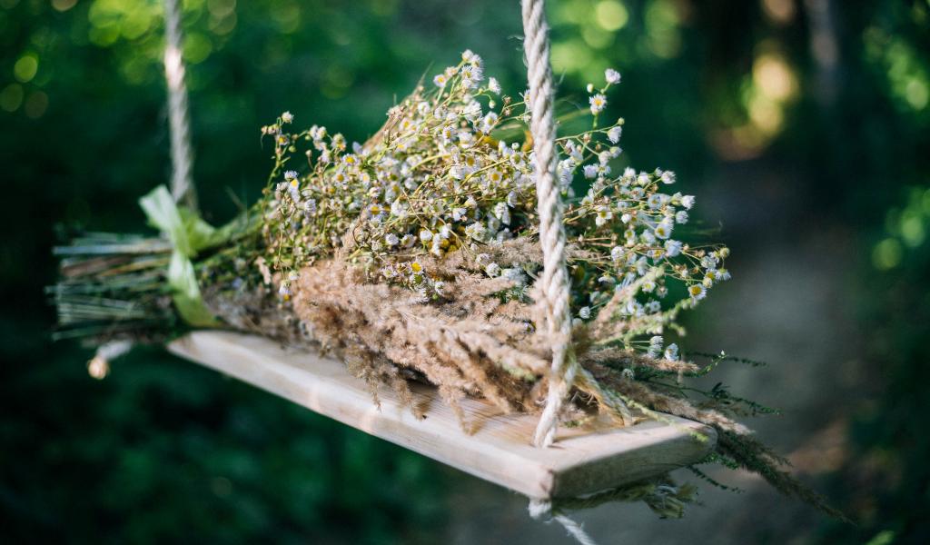 Wallpaper Bouquet of wild flowers on lie on a swing