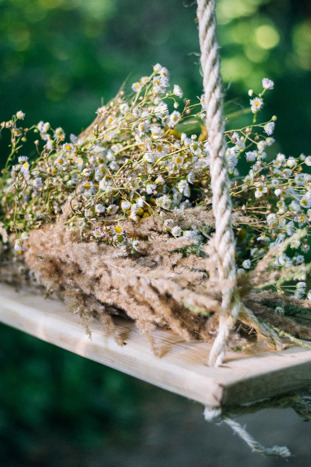 Wallpaper Bouquet of wild flowers on lie on a swing
