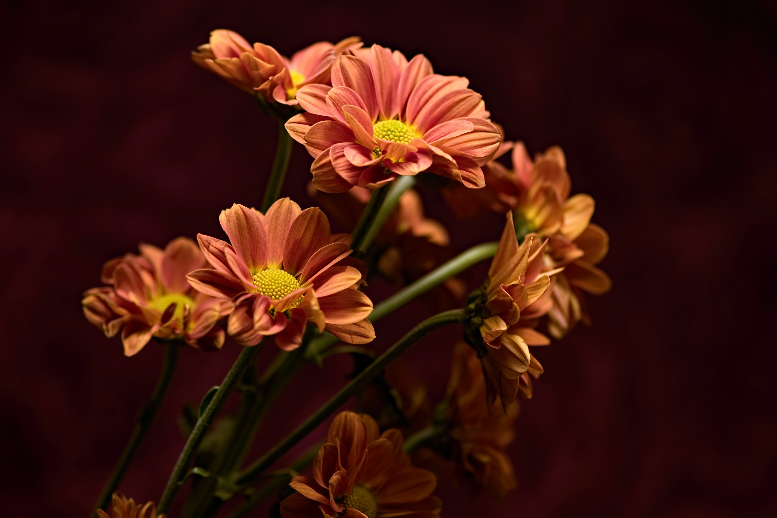 Wallpaper Bouquet of orange chrysanthemums close up