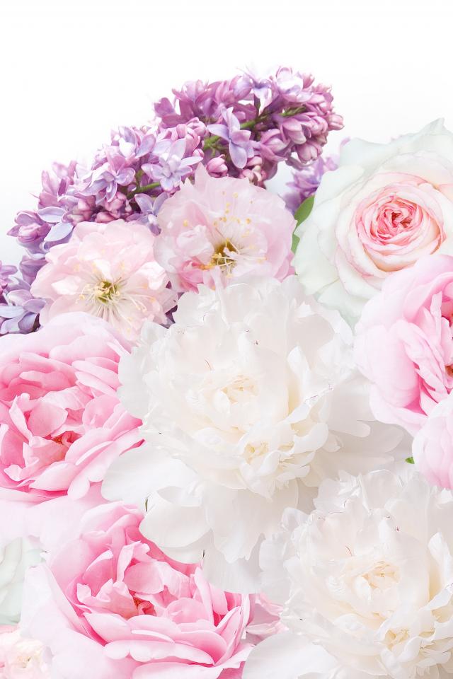 Wallpaper Bouquet of peonies with lilac on a white background