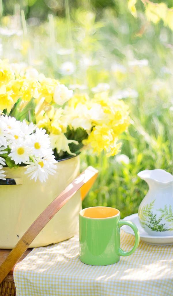 Wallpaper A bouquet of flowers in the pot is on the basket
