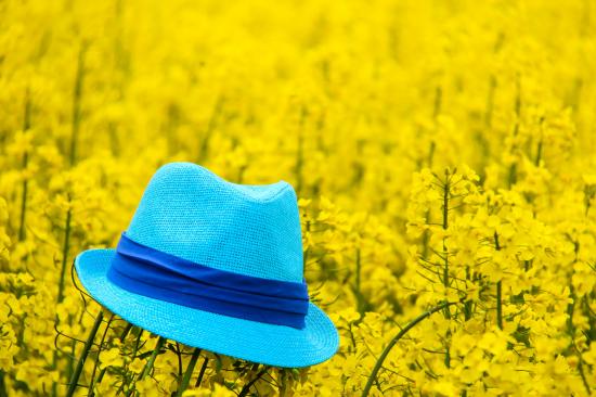 Wallpaper Beautiful blue-eyed girl lies on yellow field flowers