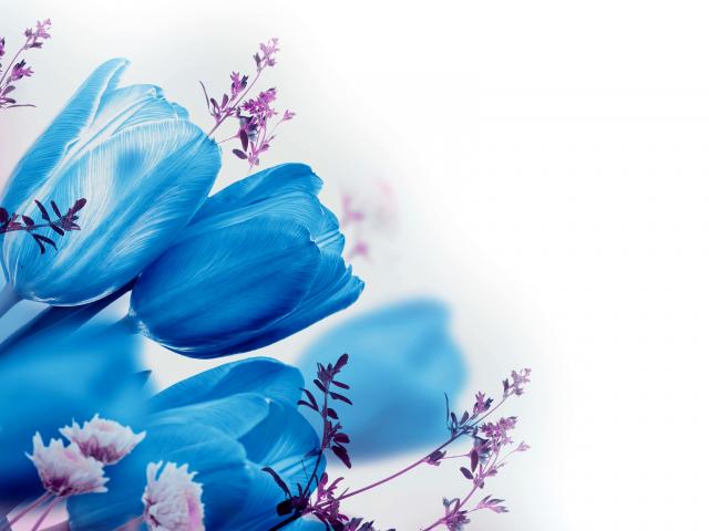 Wallpaper Blue tulips on a white background