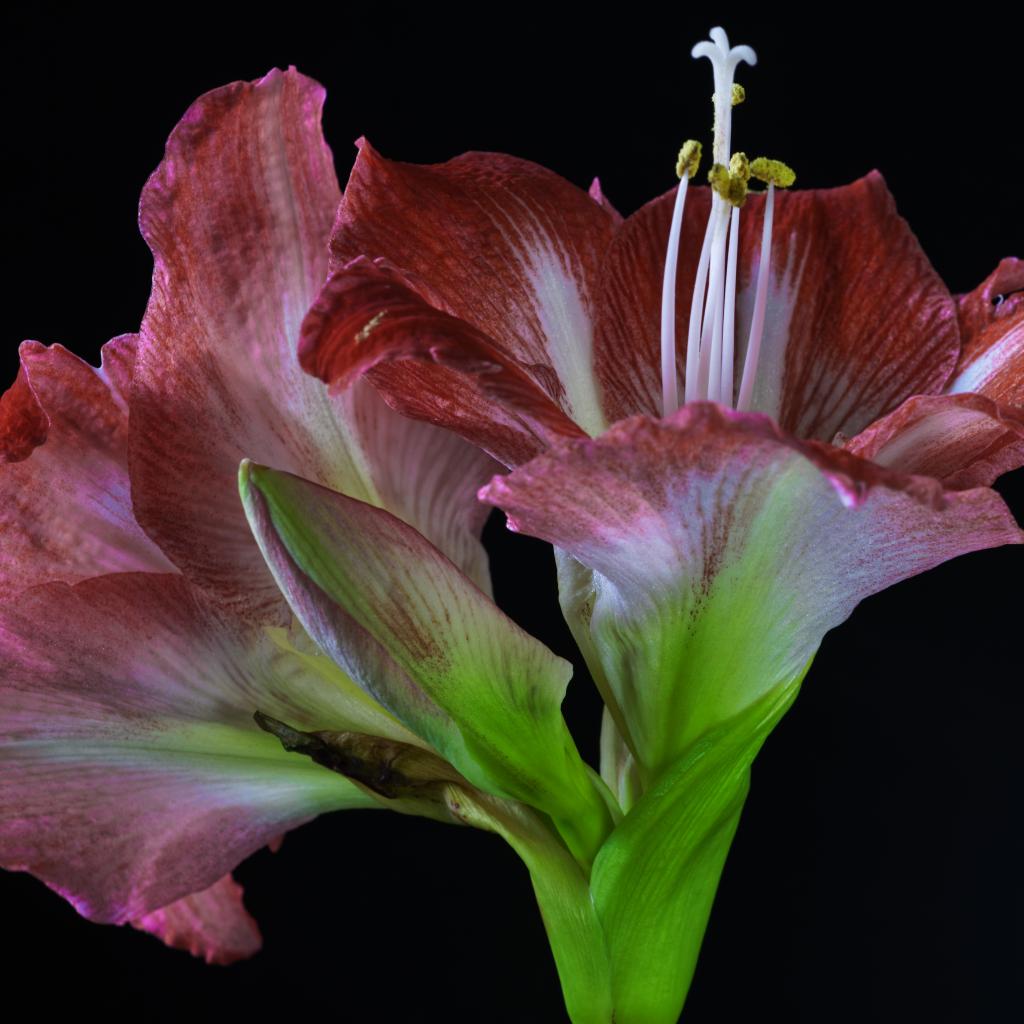 Wallpaper Two red beautiful flowers of amaryllis on a black background