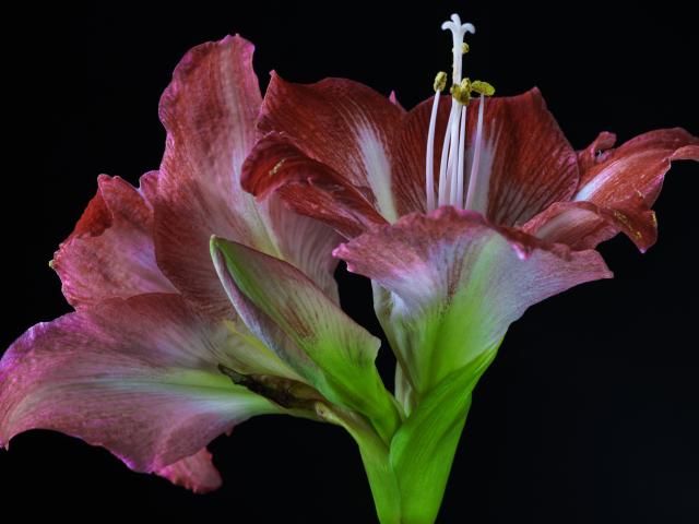 Wallpaper Two red beautiful flowers of amaryllis on a black background