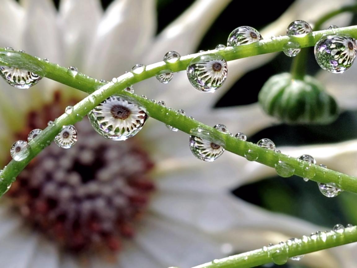 Wallpaper Drops on the green stalks of a flower