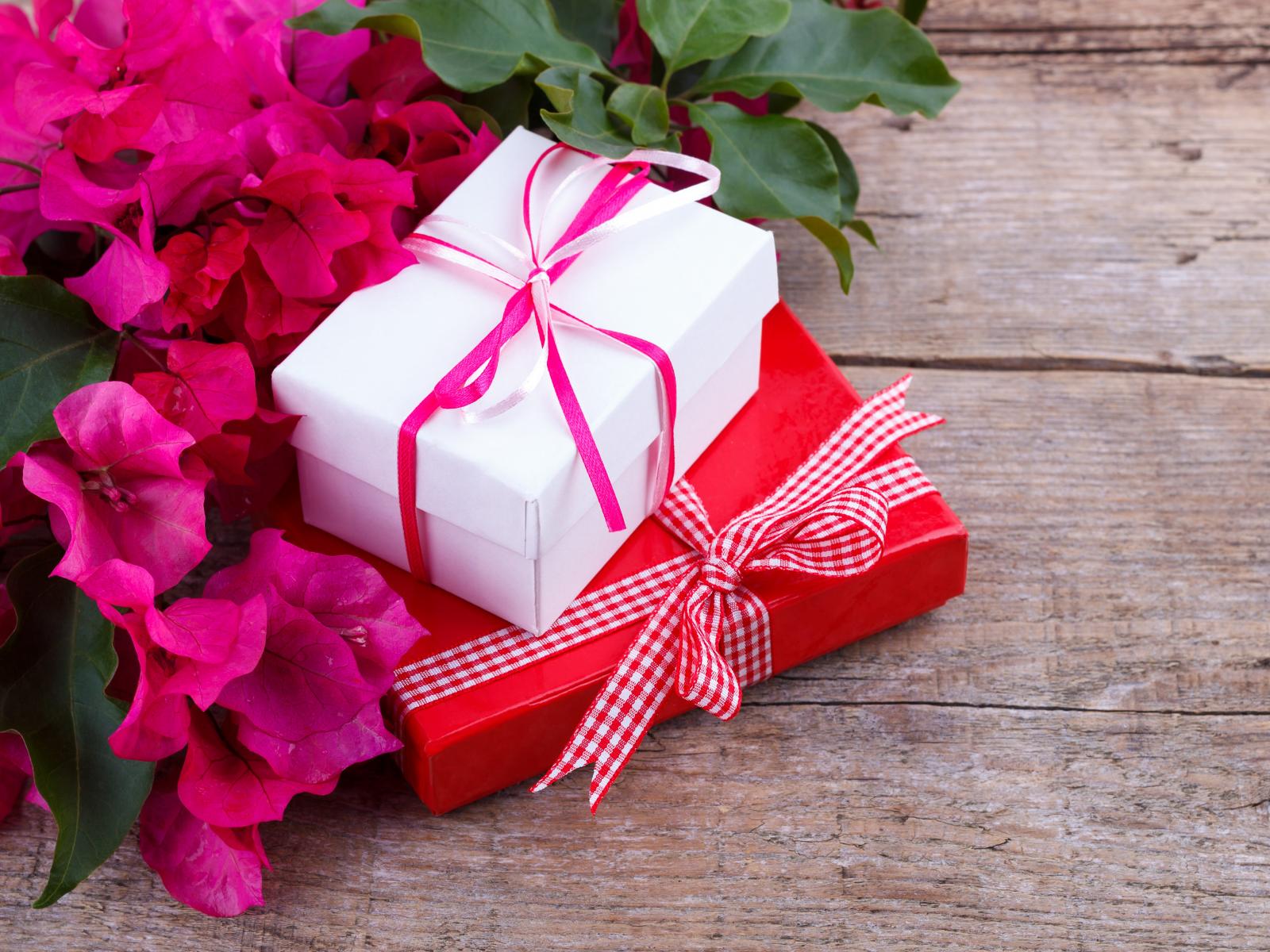Wallpaper Two boxes with gifts on the table with flowers