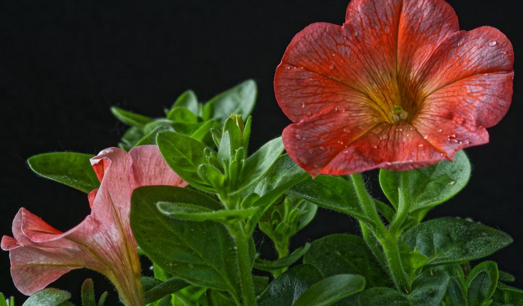 Wallpaper Beautiful red petunia with buds on a black background
