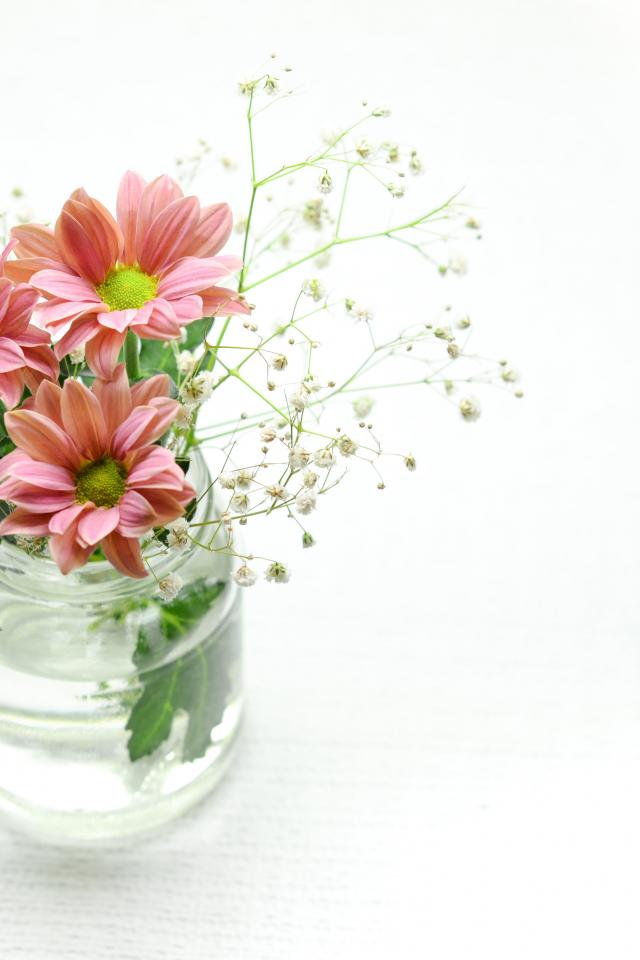 Wallpaper Beautiful pink chrysanthemum in jar on white background