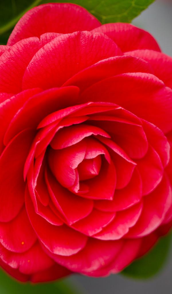 Wallpaper Beautiful delicate red camellia flower on a gray background