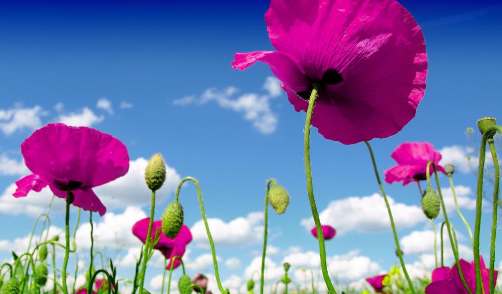 Wallpaper Pink poppies against a blue sky