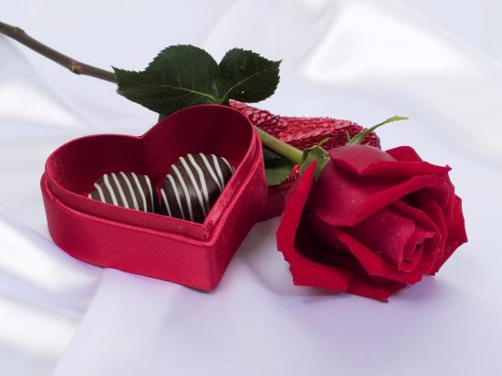 Wallpaper Red rose with heart shaped box of chocolates