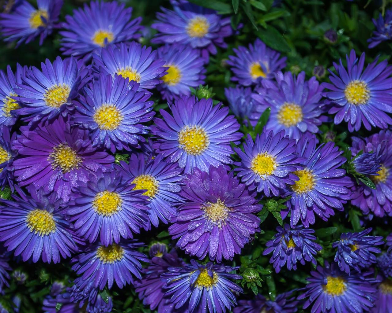 Wallpaper Blue flowers aster closeup