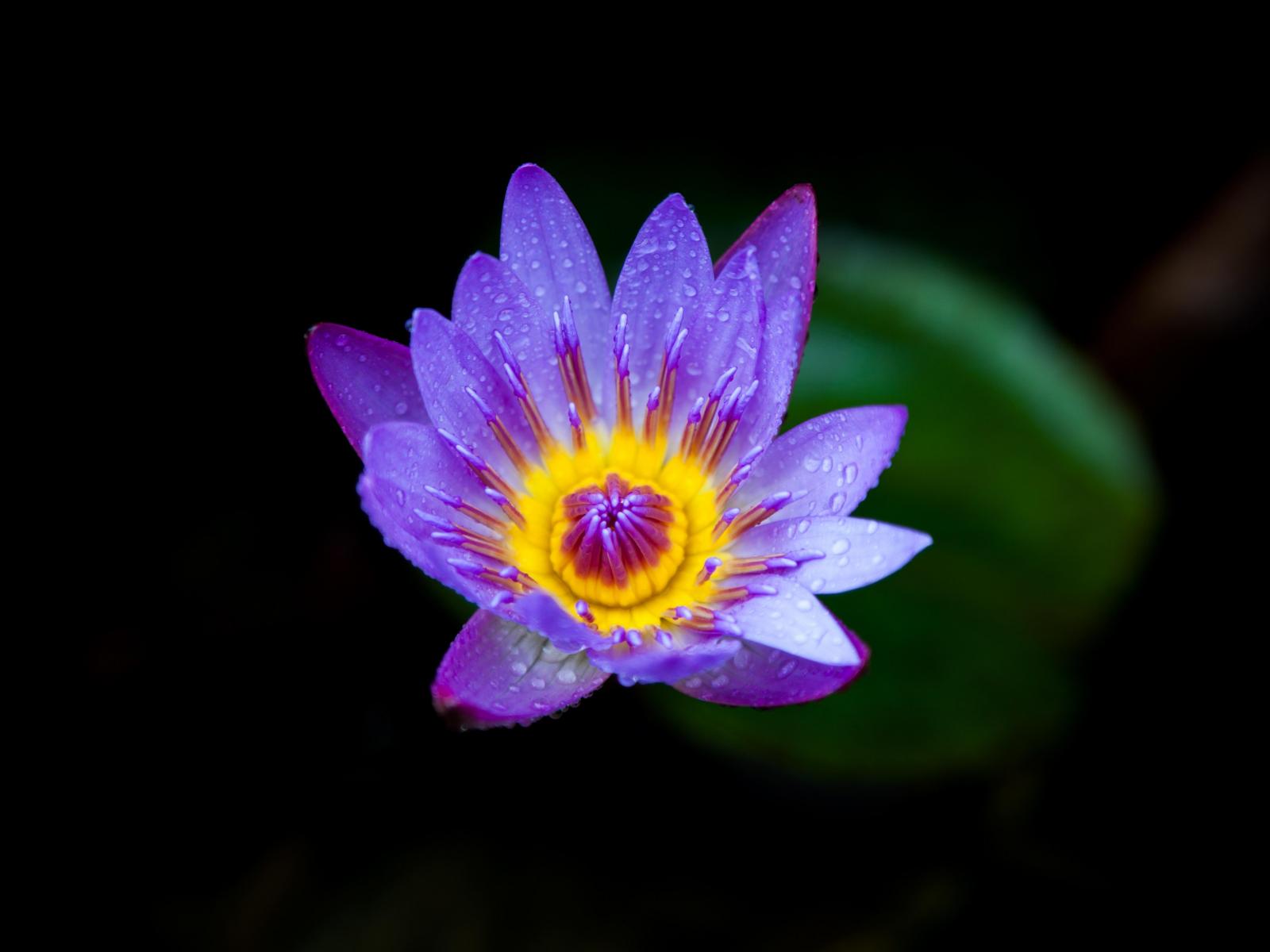 Wallpaper Purple flower of a water lily close-up on a black background