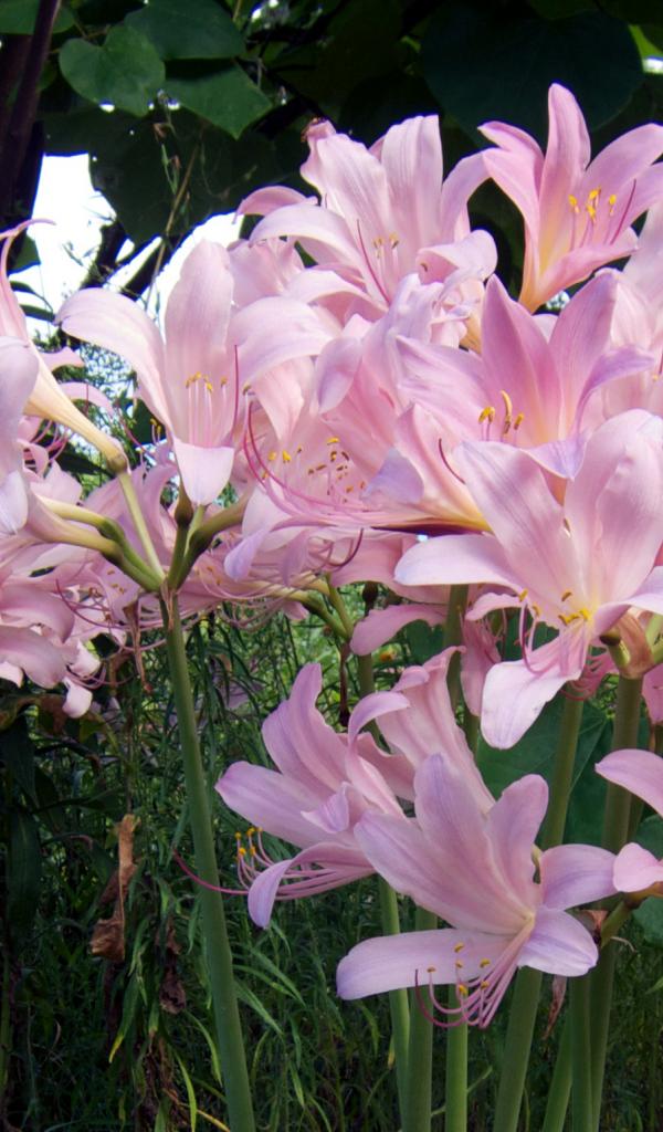 Wallpaper Pink beautiful lilies on a flowerbed