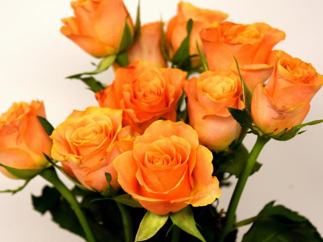 Wallpaper A bouquet of beautiful orange roses on a gray background
