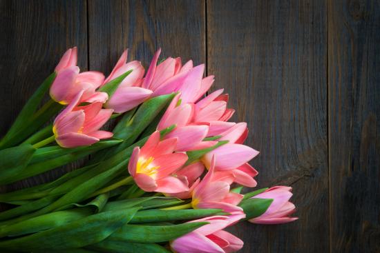 Wallpaper Beautiful bouquet of pink tulips on a wooden table