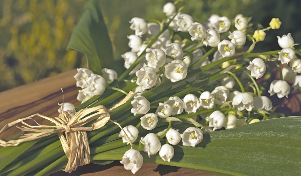 Wallpaper Beautiful white lilies of the valley with green leaves