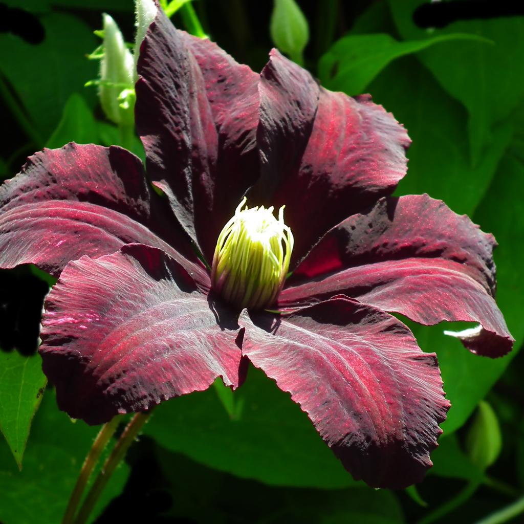 Wallpaper Big beautiful lilac clematis flower in green leaves
