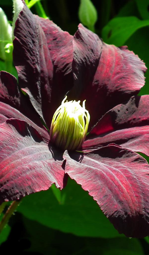 Wallpaper Big beautiful lilac clematis flower in green leaves