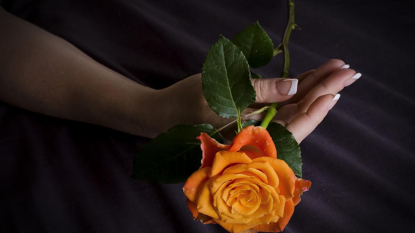 Wallpaper Blonde with a short haircut with a red rose in her hand