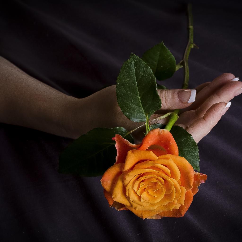 Wallpaper Blonde with a short haircut with a red rose in her hand