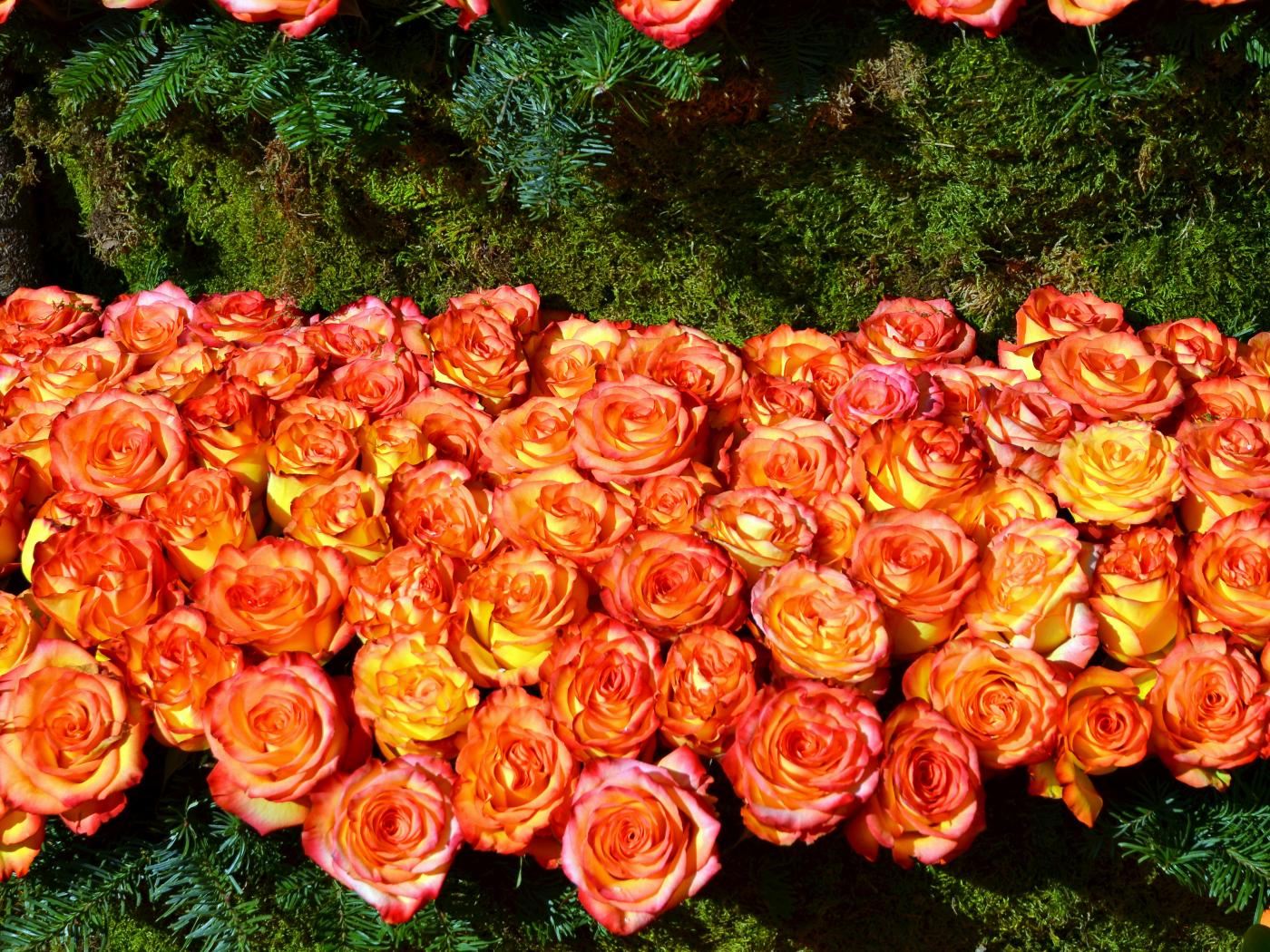 Wallpaper Beautiful bouquet of orange roses with green leaves