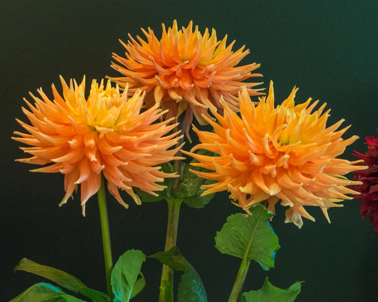 Wallpaper Three orange dahlias on a wall background