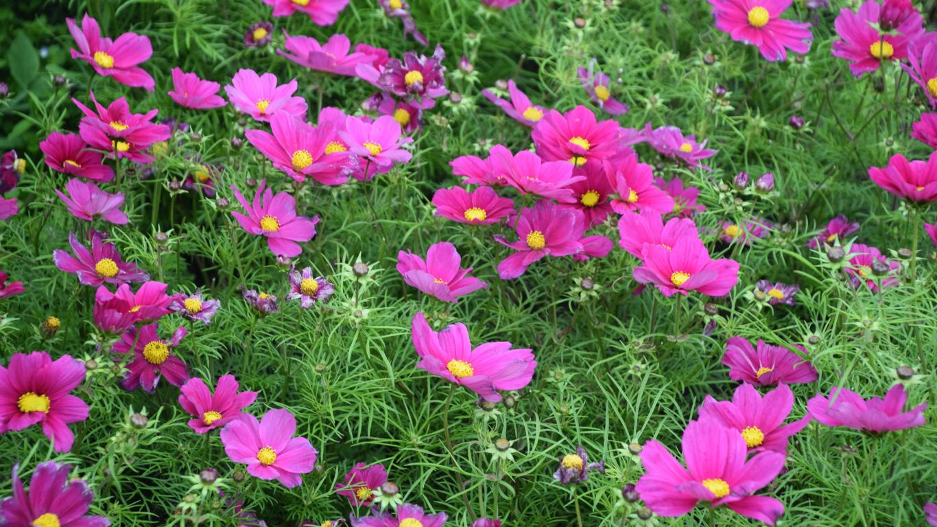 Wallpaper Beautiful delicate pink cosmea flowers in the flowerbed