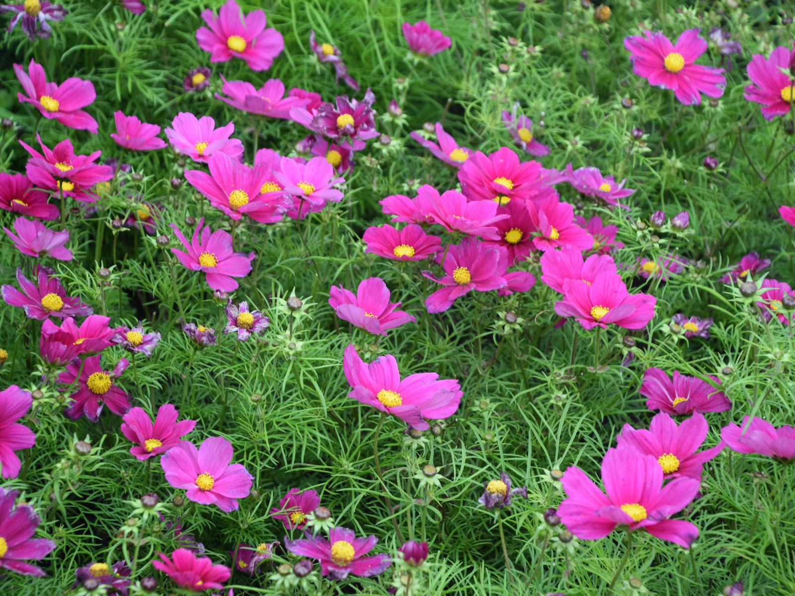Wallpaper Beautiful delicate pink cosmea flowers in the flowerbed