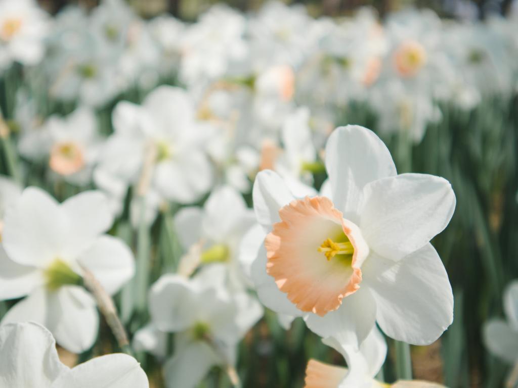 Wallpaper Lots of bright white spring daffodils in the flowerbed