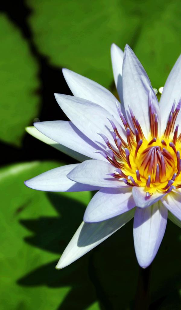 Wallpaper Blue water lily with green leaves in the water