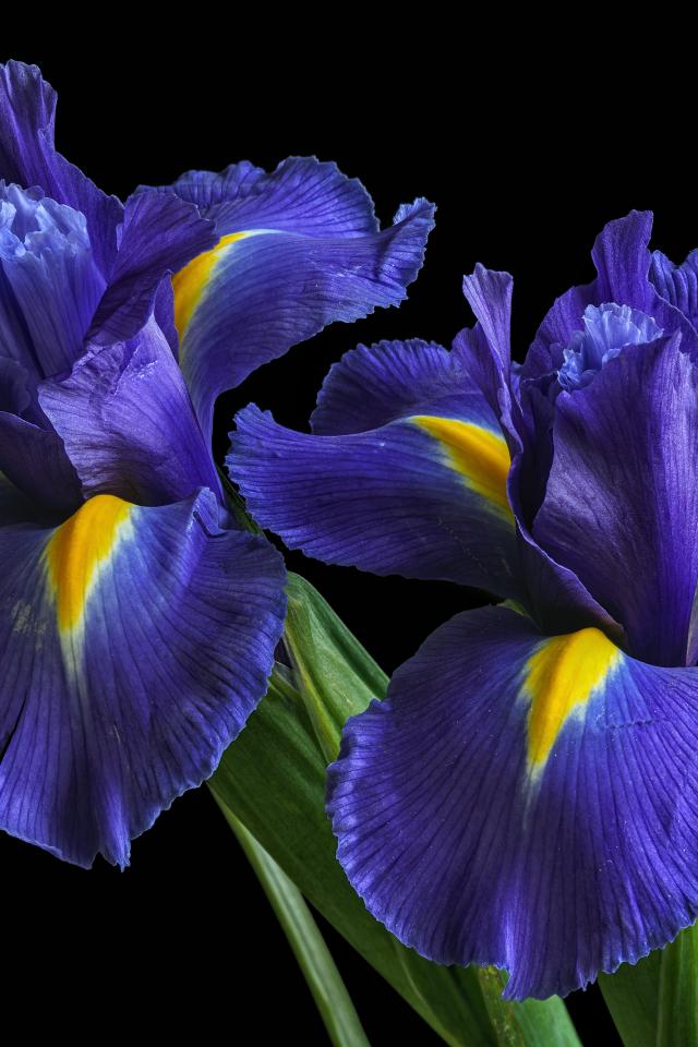 Wallpaper Two blue beautiful iris on a black background