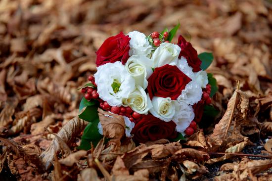 Wallpaper Beautiful wedding bouquet lies on dry grass