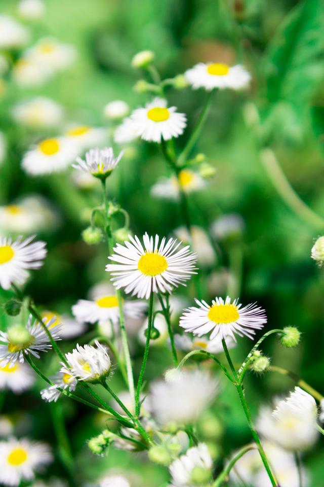 Wallpaper Daisies, White daisies, Summertime, Cloudy sky, July